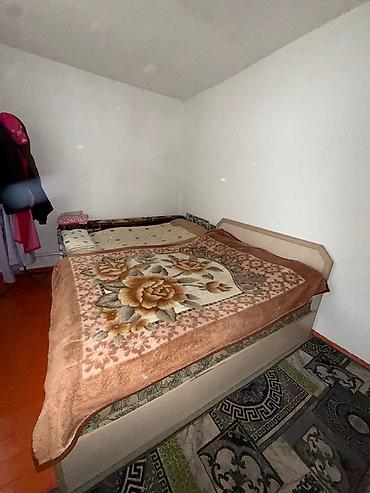 - Двуспальная кровать с высоким изголовьем. Основание с ящиком/нишей для белья (по фото — выкатной или подъёмный бокс). Матрас на фото входит в комплект, покрыт пледом.