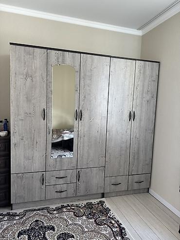 - Шкаф-купе/распашной 5-дверный с зеркалом по центру. Внизу — ряд выдвижных ящиков и секции с дверцами. Удобные эргономичные ручки, комбинированное внутреннее наполнение (отделения под плечики и полки).