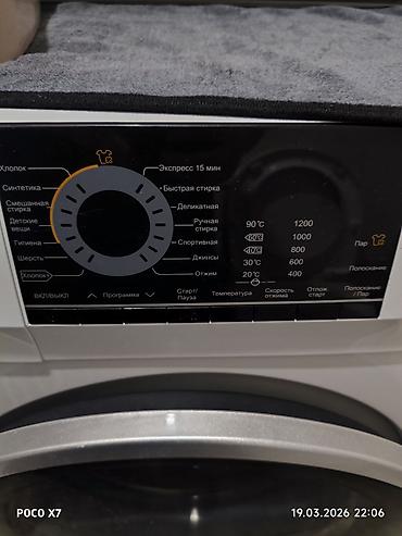 - Скорость отжима: 1200 / 1000 / 800 / 600 / 400 об/мин (выбирается на панели).