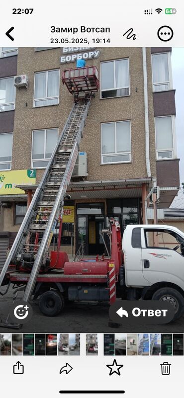 Услуга: автолифт-подъёмник для подъёма и подачи грузов на высоту Описание: - Автолестница на базе малотоннажного грузовика (Hyundai), работает как наклонный грузовой лифт. - Подача стройматериалов...