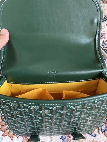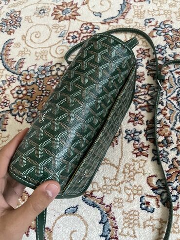 Сумка через плечо в фирменном зеленом узоре Goyard +Карточка Гоярд - Формат: компактная кросс-боди прямоугольной формы. - Материал: покрытое полотно с характерным геометрическим принтом; отделка и ...