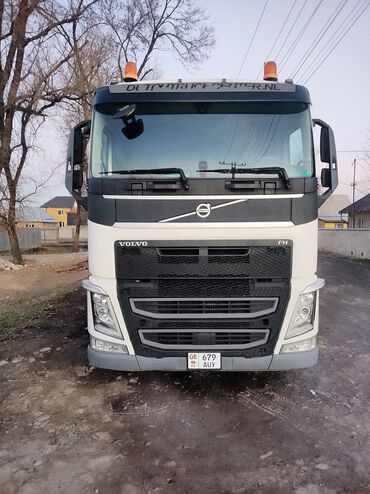 - Кабина Volvo FH с высокой аэродинамической мордой, светодиодная оптика, оранжевые проблесковые маяки на крыше.