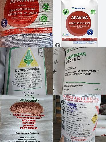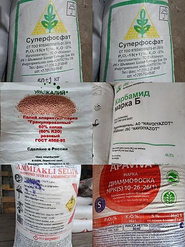 Комплексные минеральные удобрения в мешках по 50 кг: 1) Суперфосфат гранулированный - P2O5 — 15% (±1%), K2O — 2% - Масса: 50±1 кг - Произведено в Казахстане 2) Селитра аммиачная, марка Б, сорт вы...