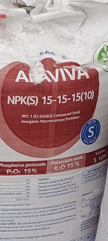 Удобрение APAVIVA NPK(S) 15-15-15(10) - Тип: азотно-фосфорно-калийное удобрение с серой (комплексное гранулированное). - Состав действующих веществ: - Азот (N) — 15% ±1 - Фосфор в пересчёте на...Вход•Регистрация