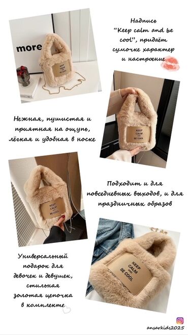 Всего за 250 сом🤩 И маленьким и взрослым принцессам можно 🎀 На зиму прям «Winter Style»❄️ А на Новый Год подарок самое то🎄 Плюшевая сумочка-сердце на цепочке🫶🏼 - Форма: сердце, пушистый меховой ...