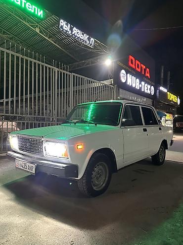 ВАЗ 2107, седан, белый цвет. Основные характеристики: - Кузов: 4-дверный седан «классика» с прямыми бамперами и хромированной передней решёткой. - Оптика: квадратные фары, указатели поворота в бло...