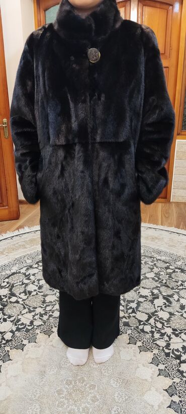 Шуба из натурального меха норки, цвет натуральный. длина 110 см. 50 размер...