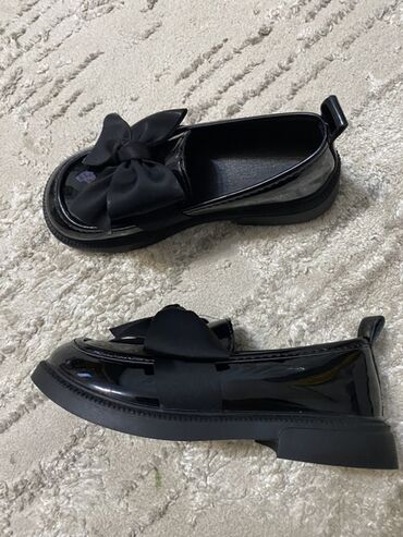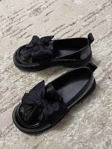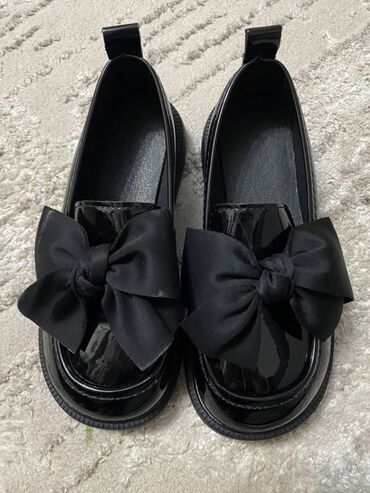 Детские Лоферы с бантом, глянцево‑черные,очень мягкие