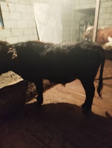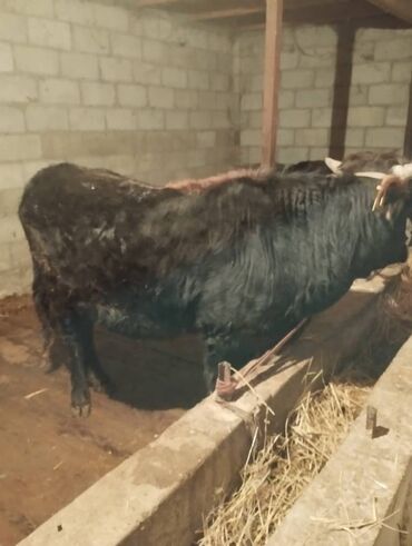 Бык чёрного окраса, рогатый, на привязи, содержится в отдельном стойле. Крупный, широкая спина и грудь, крепкий костяк, ровные конечности. Кожа и шерсть тёмные, плотные. Уши с бирками. Спокойный ха...