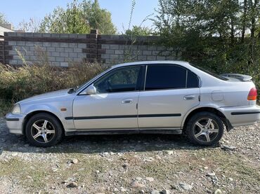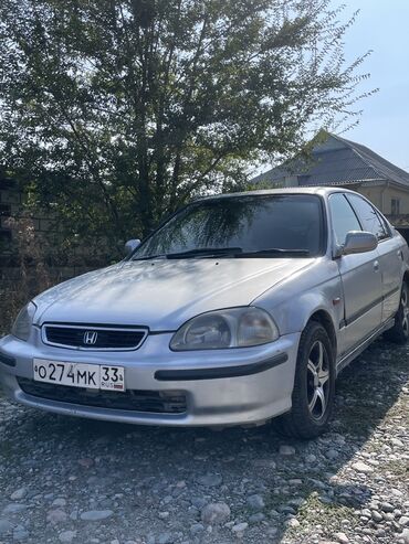 Honda Civic седан (примерно VI поколение, конец 1990‑х). Серебристый цвет, 4 двери. Кузов и экстерьер: - Компактный седан с классическими очертаниями Civic. - Заводские бамперы и оптика: сзади раз...