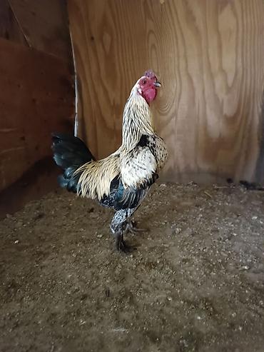 Петух домашний, крупный, пёстрого окраса (крапчато-серый с белыми и чёрными перьями), яркий гребень, мощные ноги с жёлтыми плюснами. Возраст визуально зрелый. Спокойно держится рядом с курами, акти...