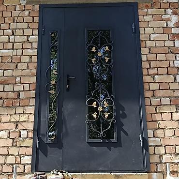 - Входные металлические двери: стальное полотно с остеклением и коваными решетками, декоративные элементы в классическом стиле. Петли усиленные, врезной замок, возможность подбора цвета и рисунка ковки.