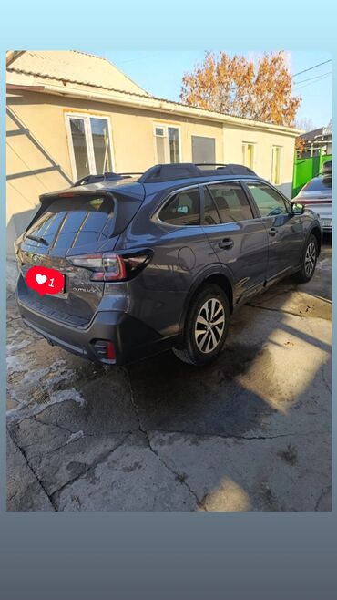 Subaru Outback, универсал кроссовер, серый металлик. Полный привод AWD, клиренс для бездорожья, защитный некрашеный обвес. Светодиодная оптика, противотуманные фары. Литые диски, всесезонные шины. Рейлинги с интегрированными поперечинами. Тонированные задние стекла, спойлер на пятой двери, датчики парковки/камеры по периметру.