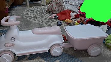 Каталка-машинка для детей с прицепом-контейнером - Тип: толокар/каталка с ручкой-рулем - Комплектация: основная машинка + съёмный прицеп на двух колёсах с крышкой (подходит для перевозки игрушек и...