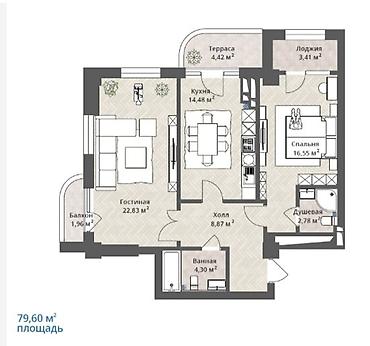 - Общая площадь: 79,6 м²