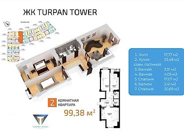 Предлагаются 2-комнатные квартиры площадью около 99 м² с продуманными планировками: