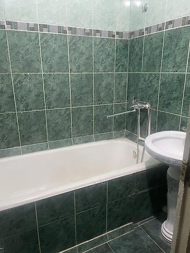 - Стены и экран ванны облицованы керамической плиткой: зеленые тона с декоративным фризом по периметру.