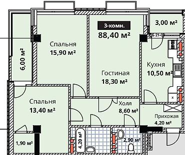 - Общая площадь: 88,4 м²