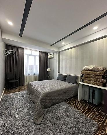 Сдается: 3 комнатная квартира Район: 5 мкр Адрес: Каралаева 40/4 Площадь: 100 кв.м. Этаж: 8/12 Цена: 950$ +500$ депозит