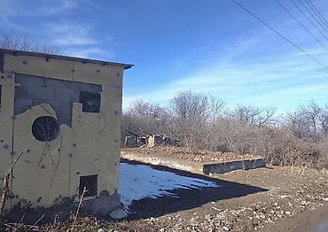 - На участке есть капитальная хозпостройка из шлакоблока с утеплением, односкатной крышей, окнами; внутри/снаружи требуется доработка.