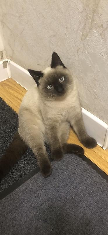 - Порода/тип: короткошёрстный колор-пойнт (сиамо- или британского типа)