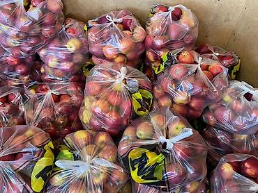 На фото показаны варианты фасованных пакетов с жёлтыми и красными яблоками.
