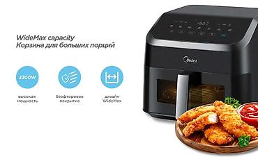 - WideMax capacity — широкая корзина, удобна для больших порций и крупногабаритных продуктов.