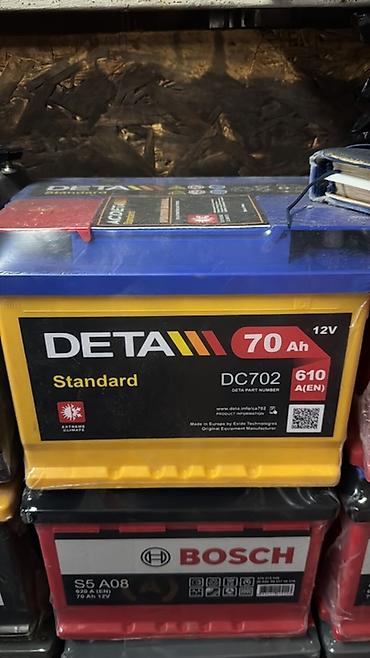 - DETA Standard DC702: 12V, 70 Ah, пусковой ток 610 A (EN). Европейское производство (Exide Technologies). Подходит для эксплуатации в суровом климате.