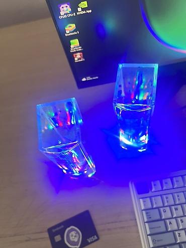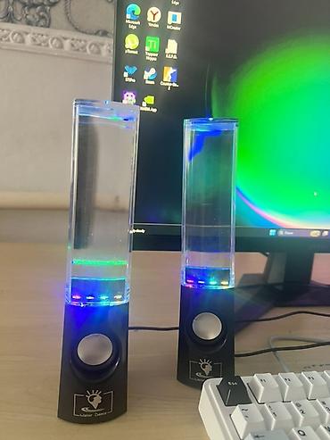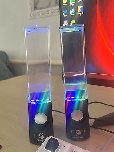 - Комплект из двух настольных колонок с прозрачными резервуарами: струи воды двигаются в такт музыке.