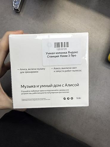 В комплекте: колонка Яндекс Станция Мини Про и стандартные аксессуары по упаковке производителя. Цвет на коробке — светлый (белый/серый корпус с черной верхней панелью).