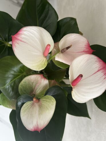 ‼️‼️‼️Акция ‼️Антуриум с бело‑розовыми соцветиями - Горшечное декоративно‑лиственное и цветущее растение с крупными глянцевыми сердцевидными листьями. - Соцветия: белые покрывала с нежным розовым ...