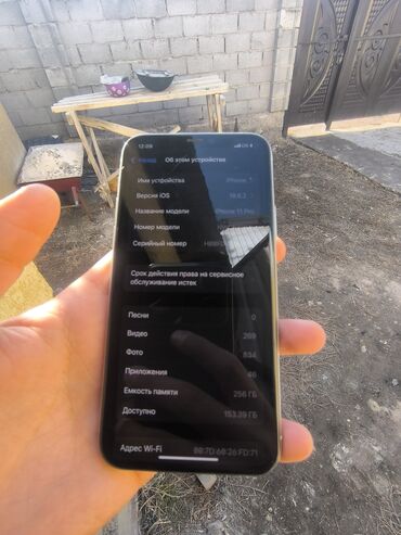 На скриншотах/фото: модель iPhone 11 Pro, версия iOS, объём памяти 256 ГБ и состояние аккумулятора.