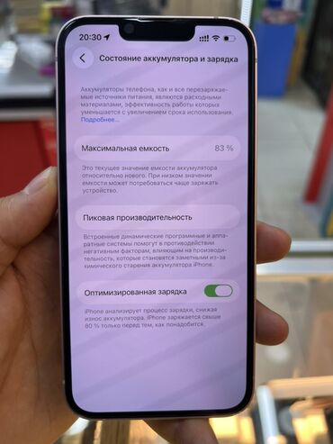 - Аккумулятор: максимальная ёмкость 83%, включена «Оптимизированная зарядка»