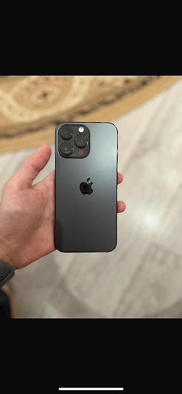 На фото — чёрный титановый корпус, тройной модуль камер и новый экран с вырезом Dynamic Island.