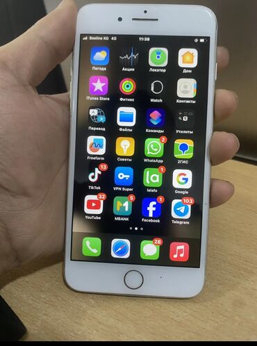 IPhone 8 Plus, цвет Gold (золотистый) - Экран 5.5" Retina HD (1920×1080), фронтальная панель белая, кнопка Home с Touch ID.работает . батареясын алмаштырып алсан сонун болуп калат келишим туру бар...
