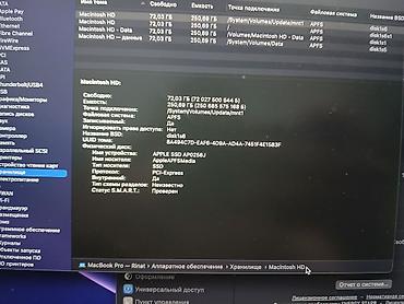- Накопитель: 256 ГБ SSD (Apple SSD AP0256J, PCI‑Express, файловая система APFS)