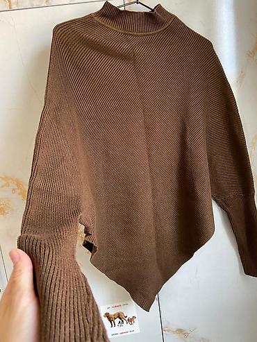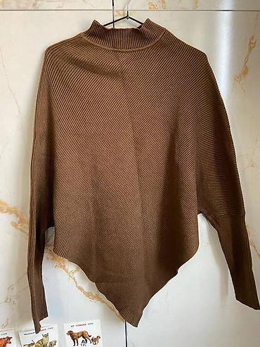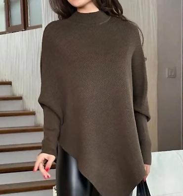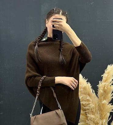 Ассиметричный вязаный свитер-пончо, цвет тёмно‑коричневый.