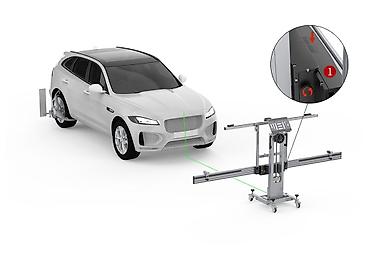 - Проверка геометрии установки датчиков относительно оси автомобиля с лазерной разметкой и направляющими.