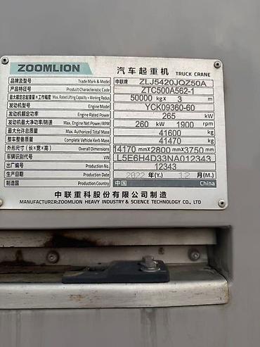- Производитель: Zoomlion Heavy Industry & Science Technology Co., Ltd (Китай)