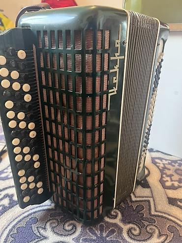 - Клавиатура: справа — кнопочная (мелодическая) с несколькими рядами; слева — кнопочная басово-аккордовая секция.