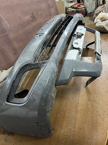 - Конфигурация: основной бампер с центральной воздушной решёткой, отверстия под крепления и парктроники/накладки, боковые проёмы под ПТФ/воздухозаборники, отдельная верхняя/средняя декоративная планка.
