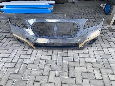 - Конструкция: центральное большое окно под решетку радиатора; нижняя продольная ниша под воздухозаборник/сплиттер; боковые круглые ниши под ПТФ/воздуховоды; места крепления под усилитель/кронштейны.