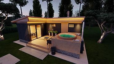 Модульная баня с террасой и уличной купелью