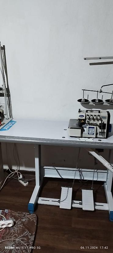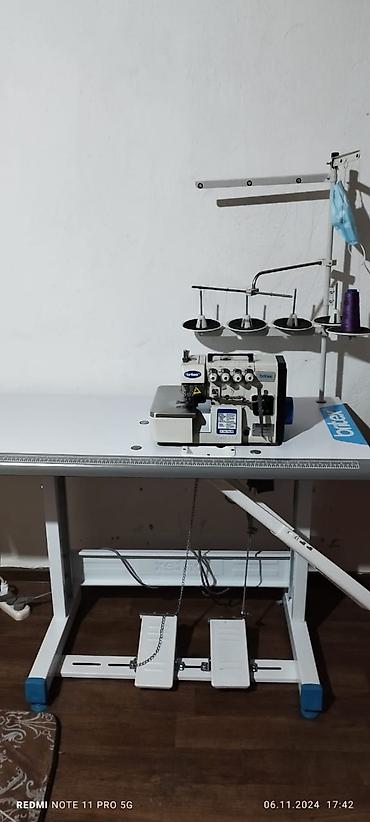 4 нитка 35000 сом только месяц работали Модель: BRUCE (серия Q5) и DULIPU MACHINE – прямострочная одноигольная машина. Комплектация по фото: - стол-швейный модуль с линейкой-разметкой; - педа...