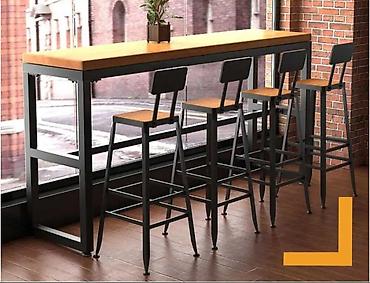 - Высокая барная группа: длинный прямоугольный стол со столешницей из массива/шпон дерева теплого оттенка и прочным металлическим каркасом. Комплектуются высокие барные стулья со спинками: сиденья из дерева, база из металла, перекладины под ноги, устойчивые к нагрузкам. Идеально для баров, кафе, кухонь с островом или зоной завтраков, коворкингов. Прямолинейная геометрия, индустриальный стиль, устойчивые опоры, удобная посадка, легко поддерживать в чистоте.