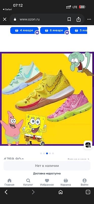 На скриншотах указана цена: 4759,90 с. Статус: «Нет в наличии». Доставка: «недоступна».