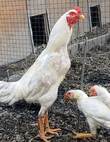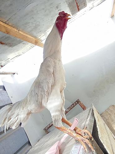 Петух боевой породы (тип аям цемани/азиль, высокий рост). Окрас черный с рыжими перьями на шее, гребень листовидный, клюв светлый. Крупный, высокие крепкие ноги, плотное оперение, вытянутое телосло...