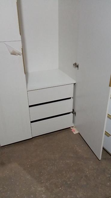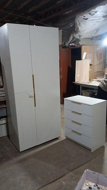 Белый комплект мебели для хранения: шкаф-купе распашной + комод.