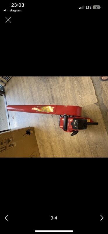 - Корпус и труба красного цвета с декоративными наклейками «пламя».