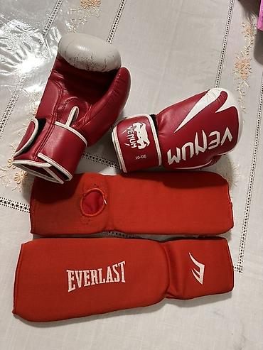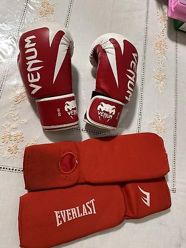 Боксерский комплект: перчатки Venum + кистевые бинты/защита Everlast.